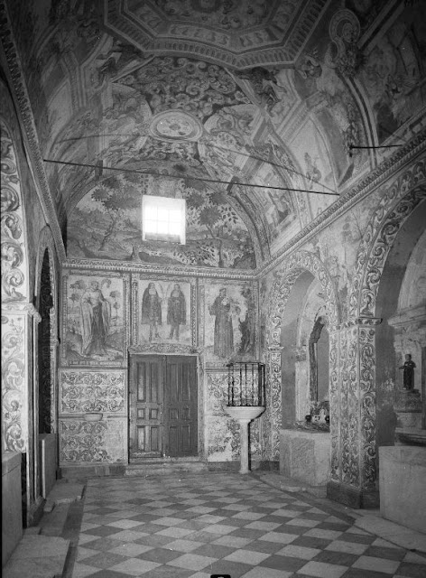 Aspecto interior da Ermida de São Bento, em Vila Viçosa. A nave está revestida de pinturas a fresco, datadas de 1711.