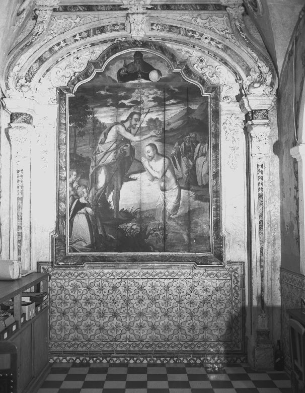 Antigo Locutório do Convento das Maltesas, em Estremoz. No altar está o painel do "Baptismo de Jesus" (de c. 1600). Esta imagem está publicada no Inventário Artístico de Portugal de Túlio Espanca (Distrito de Évora, Zona Norte, Volume II).