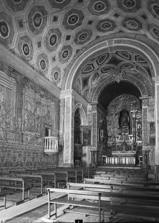 Nave e capela-mor da Igreja da Misericórdia de Arraiolos. Esta imagem está publicada no Inventário Artístico de Portugal de Túlio Espanca (Distrito de Évora, Zona Norte, Volume II).