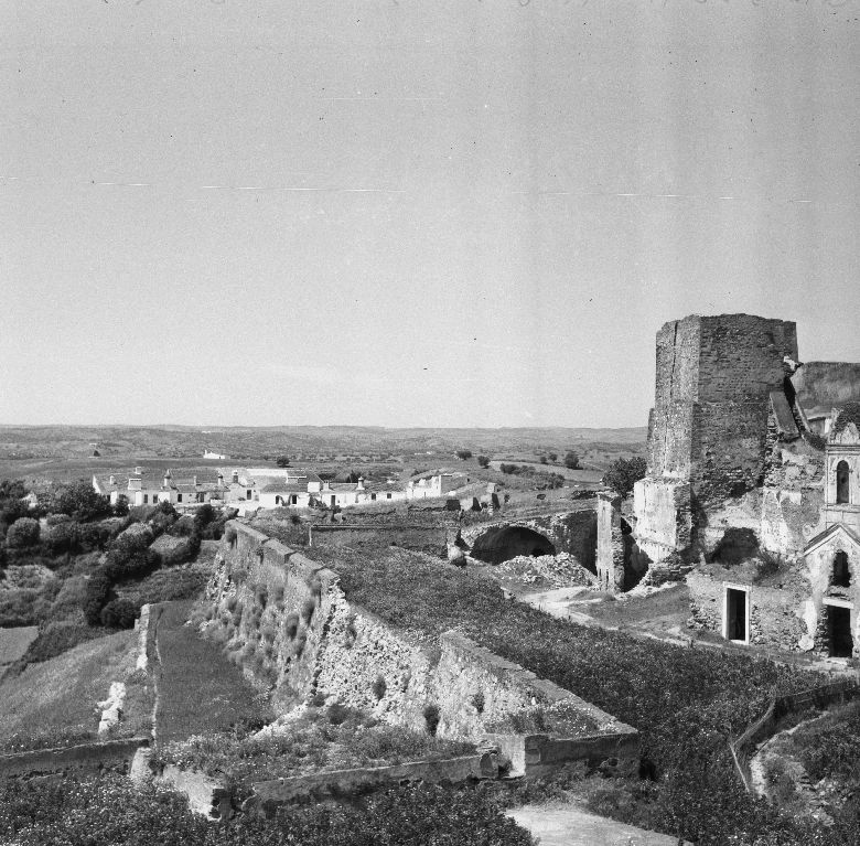 Fortaleza de Juromenha: vista dos baluartes, das ruínas da Torre de Menagem e das ruínas da Igreja da Misericórdia.