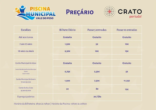 O concelho do Crato abre as suas piscinas públicas com vigilância e respeitando as normas da Direção Geral de Saúde. No dia 6 as do Crato, no dia 7, as de Gáfete e no dia 10 de julho as de Vale do Peso.