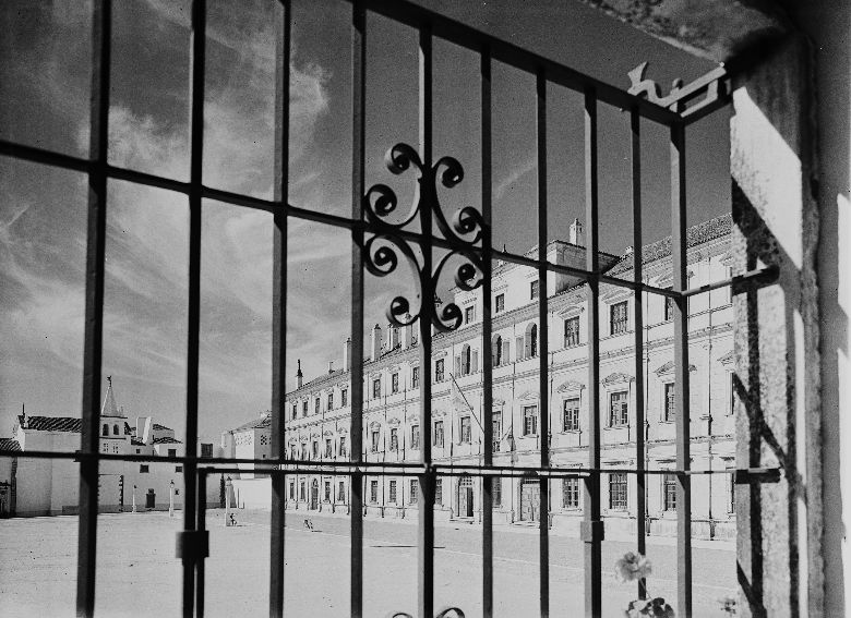 Fachada do Paço Ducal de Vila Viçosa (Paço dos Duques de Bragança) e vista parcial do Terreiro do Paço.